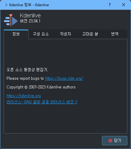 Kdenlive 23.04.1 출시 2023.05.21 04:32 PC.Div.Soft/Free Software 반응형 Kdenlive의 23.04.1 버전이 출시되었습니다. 이번 버전의 주요 업데이트로는 23.04에서 있었던 프로젝트 손상 등의 버그를 수정한 버전이라고 하며, 앞으로도 개선해 나갈 것이라고 하네요. 23.04.0 버전 사용자들은 23.04.1로 업데이트하는 걸 권장한다고 하니 참조하시길. 제 경우엔 22.08버전에서 업데이트하는 거라 추가된 기능이 많아서 좀 어색하네요. 반응형 공유하기 게시글 관리 Klein Berry 'PC.Div.Soft > Free Software' 카테고리의 다른 글 숏컷(Shortcut) 23.05.14 업데이트 (0) 2023.05.21 CapFrameX - 프레임 측정 툴 (0) 2023.05.08 게임 라이브러리 관리 프로그램 - playnite (0) 2023.05.07 댓글 공유하기 다른 글 댓글 이 글 공유하기 구독하기 구독하기 카카오톡 카카오톡 라인 라인 트위터 트위터 Facebook Facebook 카카오스토리 카카오스토리 밴드 밴드 네이버 블로그 네이버 블로그 Pocket Pocket Evernote Evernote 다른 글 WhisperDesktop 사용하기(AMD 글카 등) WhisperDesktop 사용하기(AMD 글카 등) 2023.06.05 숏컷(Shortcut) 23.05.14 업데이트 숏컷(Shortcut) 23.05.14 업데이트 2023.05.21 CapFrameX - 프레임 측정 툴 CapFrameX - 프레임 측정 툴 2023.05.08 게임 라이브러리 관리 프로그램 - playnite 게임 라이브러리 관리 프로그램 - playnite 2023.05.07 다른 글 더 둘러보기