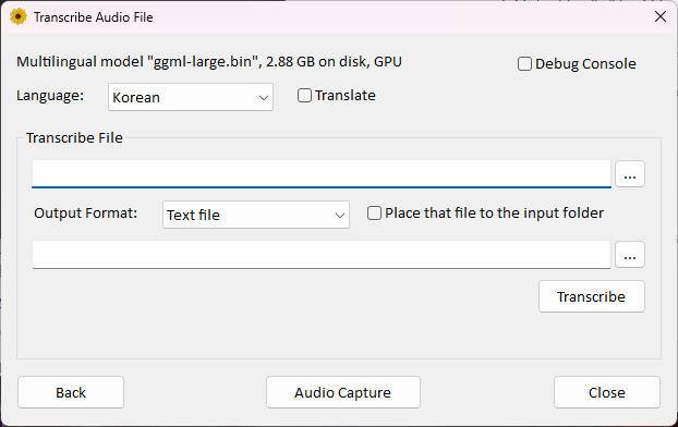 참 비교적 저사양과 다양한 시스템에서 빠른 성능으로 사용할 수 있는 윈도 데스크톱용으로는 이런것도 있으니까 참조합시다. 번역 기능은 사용할 수 없지만 음성 인식은 사용할 수 있음. 모델 다운로드는 프로그램 실행에서도 가능하지만 여기서 가능하다. 고마워요 OpenAI랑 개발자 분들!