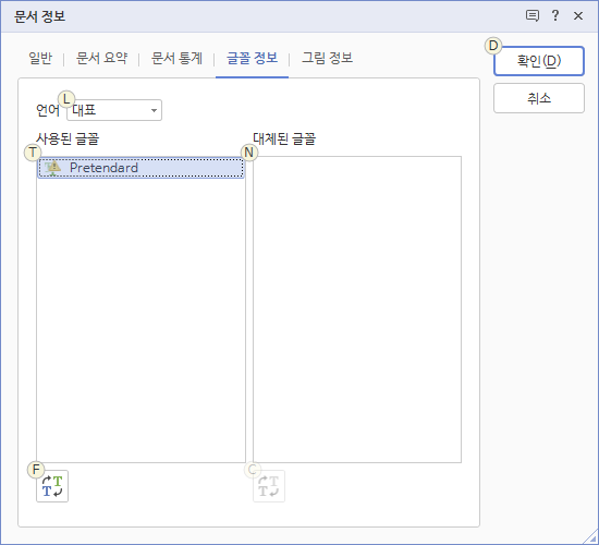 한글) 폰트 일괄 변경 2023.08.07 12:34 Web.World/Tip.Cad.De.3D.Font 반응형 변경은 아니고, 사용된 폰트를 대처하는 기능이라고 해야하나, 그게 그거긴 하지만. 아무튼 한글에서 폰트를 바꿀 문서를 열고 [파일] - [문서 정보] - 글꼴 정보 탭에서 사용된 글꼴을 선택하고, 왼쪽 아래 변환 버튼 눌러서 바꿀 폰트로 선택해주면 된다. 반응형 공유하기 게시글 관리 Klein Berry 'Web.World > Tip.Cad.De.3D.Font' 카테고리의 다른 글 엑셀) 가로 세로 데이터 바꿔서 붙여넣기 (0) 2023.09.08 MS 워드) 더블 클릭 시 문단 선택 안될 때 (0) 2023.07.14 지자체별 공공 디자인 색체 가이드라인 활용 (0) 2023.07.13 댓글 공유하기 다른 글 댓글 이 글 공유하기 구독하기 구독하기 카카오톡 카카오톡 라인 라인 트위터 트위터 Facebook Facebook 카카오스토리 카카오스토리 밴드 밴드 네이버 블로그 네이버 블로그 Pocket Pocket Evernote Evernote 다른 글 캐드) cadsg.shx 폰트 캐드) cadsg.shx 폰트 2023.09.15 엑셀) 가로 세로 데이터 바꿔서 붙여넣기 엑셀) 가로 세로 데이터 바꿔서 붙여넣기 2023.09.08 MS 워드) 더블 클릭 시 문단 선택 안될 때 MS 워드) 더블 클릭 시 문단 선택 안될 때 2023.07.14 지자체별 공공 디자인 색체 가이드라인 활용 지자체별 공공 디자인 색체 가이드라인 활용 2023.07.13 다른 글 더 둘러보기