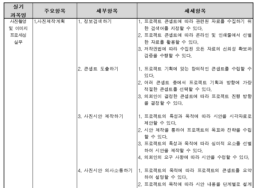정보 검색(저작권법 등), 컨셉 도출, 결과 예측 등이 추가되고요. 풍경 촬영(프레이밍, 효과 등)과 관련된 내용도 추가되는 것 같습니다. 실기 역시 콘셉과 관련된 검색어 지정, 저작권법과 관련한 내용(정보 검색)이 추가되고, 사진 시안 제작 등 의뢰인과의 커뮤니케이션...? 이 추가되어 있습니다. 이를 어떻게 체점할 지에 대해선 아직 확실하지 않은 게 좀 의문스럽네요.