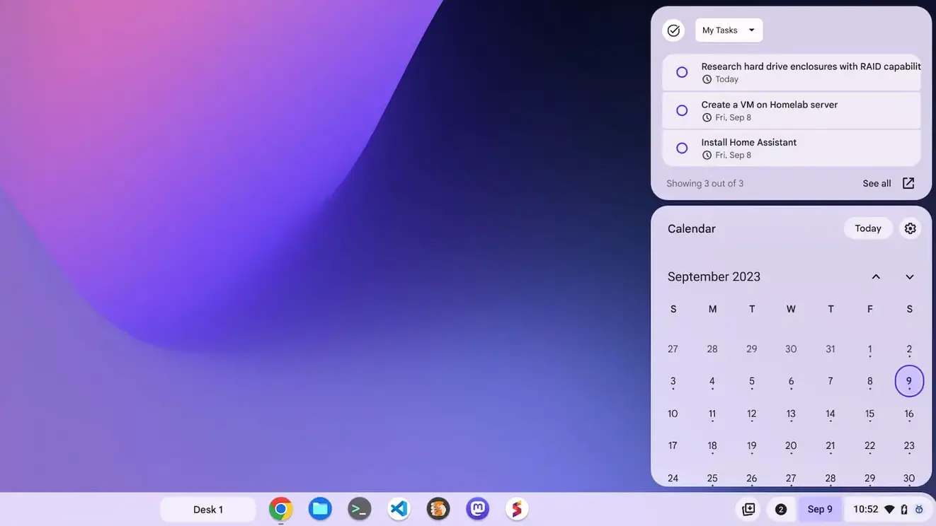 Google ChromeOS, Google Task용 위젯 추가 예정 2023.09.14 19:24 ETC.Mobile/Android.ChromeOS 반응형 Google의 Chrome OS 베타 빌드에서 Task 전용 섹션을 개선한다고 합니다. 관련해서 일정 앱에도 작은 UI 개선이 있을 거라고 하네요. ------ 생산성 향상을 위한 UI 개선은 언제나 좋은데, 안드로이드의 앱들이 너무 잘나와서 개인적으로 크롬북은 잘 켜지도 않게 되더라(....). 반응형 공유하기 게시글 관리 Klein Berry 'ETC.Mobile > Android.ChromeOS' 카테고리의 다른 글 갤럭시 스마트폰 화면 미러링 사용하기 (0) 2023.09.14 신규 크롬캐스트(안드로이드 TV) 출시 예정 (0) 2023.09.12 Android 14, 미디어 플레이어에 원클릭 음소거 기능 추가 (0) 2023.09.11 댓글 공유하기 다른 글 댓글 이 글 공유하기 구독하기 구독하기 카카오톡 카카오톡 라인 라인 트위터 트위터 Facebook Facebook 카카오스토리 카카오스토리 밴드 밴드 네이버 블로그 네이버 블로그 Pocket Pocket Evernote Evernote 다른 글 Google Chromebook, 업데이트 기간 10년으로 연장 Google Chromebook, 업데이트 기간 10년으로 연장 2023.09.15 갤럭시 스마트폰 화면 미러링 사용하기 갤럭시 스마트폰 화면 미러링 사용하기 2023.09.14 신규 크롬캐스트(안드로이드 TV) 출시 예정 신규 크롬캐스트(안드로이드 TV) 출시 예정 2023.09.12 Android 14, 미디어 플레이어에 원클릭 음소거 기능 추가 Android 14, 미디어 플레이어에 원클릭 음소거 기능 추가 2023.09.11 다른 글 더 둘러보기
