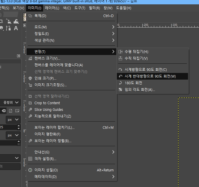GIMP에서 이미지 회전하기 2023.09.15 22:49 Web.World/Tip.Cad.De.3D.Font 반응형 요즘은 스마트폰 앱이나 웹앱이 잘 되어 있고, 꿀뷰나 XnView에서도 되는데... 일단 GIMP의 경우 이미지를 불러오고, 이미지(I) > 변형(T) 메뉴에서 불러온 이미지의 회전이 가능하니 참조합시다. 반응형 공유하기 게시글 관리 Klein Berry 'Web.World > Tip.Cad.De.3D.Font' 카테고리의 다른 글 어도비 포토샵) 크롭할 적에 수평 맞추기 (0) 2023.10.08 Convert3d.org - 무료 3D 모델 변환 (0) 2023.09.15 DesignSense CADPower - LISP 모음 (0) 2023.09.15 댓글 공유하기 다른 글 댓글 이 글 공유하기 구독하기 구독하기 카카오톡 카카오톡 라인 라인 트위터 트위터 Facebook Facebook 카카오스토리 카카오스토리 밴드 밴드 네이버 블로그 네이버 블로그 Pocket Pocket Evernote Evernote 다른 글 어도비 포토샵) 렌즈 교정 어도비 포토샵) 렌즈 교정 2023.10.08 어도비 포토샵) 크롭할 적에 수평 맞추기 어도비 포토샵) 크롭할 적에 수평 맞추기 2023.10.08 Convert3d.org - 무료 3D 모델 변환 Convert3d.org - 무료 3D 모델 변환 2023.09.15 DesignSense CADPower - LISP 모음 DesignSense CADPower - LISP 모음 2023.09.15 다른 글 더 둘러보기