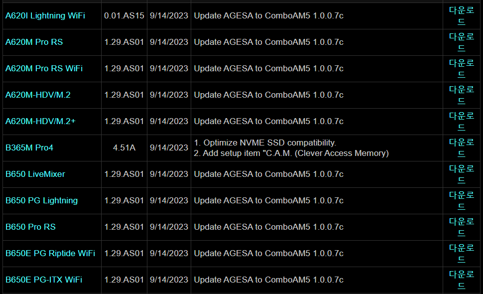 ASRock, 자사 AMD 500시리즈 머더보드에 AGESA 1.2.0.B 기반 BIOS 업데이트 2023.09.19 19:58 PC.Div.Soft/Driver.Firmware 반응형 ASRock이 자사의 500시리즈 머더보드에 AGESA 1.2.0.B 기반의 BIOS 업데이트를 진행합니다. 이 업데이트는 성능 향상이나 버그 수정보다는 Ryzen 프로세서의 취약점 완화와 관련된 업데이트인 만큼, 사용하시는 분들은 업데이트를 챙겨보세요. 또한 BETA 버전으로 AMD 600시리즈 기반 머더보드에 AGESA 1.2.0.7c 버전 업데이트 역시 진행하고 있네요. 반응형 공유하기 게시글 관리 Klein Berry 'PC.Div.Soft > Driver.Firmware' 카테고리의 다른 글 Acer Nitro 5 AN515-45 BIOS 업데이트(1.11) (0) 2023.09.20 GenMachine/Chatreey Ryzen Mini PC BIOS 업데이트 (2) 2023.09.13 GIGABYTE 구형 보드 BETA BIOS 다운로드 페이지 (0) 2023.09.12 댓글 공유하기 다른 글 댓글 이 글 공유하기 구독하기 구독하기 카카오톡 카카오톡 라인 라인 트위터 트위터 Facebook Facebook 카카오스토리 카카오스토리 밴드 밴드 네이버 블로그 네이버 블로그 Pocket Pocket Evernote Evernote 다른 글 HP 15 노트북 PC 15-e3000(4X377AV) BIOS 업데이트 HP 15 노트북 PC 15-e3000(4X377AV) BIOS 업데이트 2023.09.24 Acer Nitro 5 AN515-45 BIOS 업데이트(1.11) Acer Nitro 5 AN515-45 BIOS 업데이트(1.11) 2023.09.20 GenMachine/Chatreey Ryzen Mini PC BIOS 업데이트 GenMachine/Chatreey Ryzen Mini PC BIOS 업데이트 2023.09.13 GIGABYTE 구형 보드 BETA BIOS 다운로드 페이지 GIGABYTE 구형 보드 BETA BIOS 다운로드 페이지 2023.09.12 다른 글 더 둘러보기