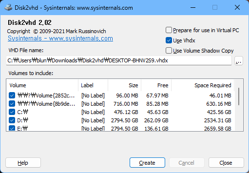 가상디스크 이미지 만들기 - disk2vhd 2023.10.11 21:44 PC.Div.Soft/Windows.Office 반응형 윈도 7부터 이런저런 가상화 기능들이 추가되었고, 그 중 하나. Sysinternals 유틸리티에는 쓸만한게 꽤 된다. 파일 받아서 압축 풀고, 저장될 VHD의 이름과 경로 지정해준 뒤, 아래에서 데이터를 포함할 드라이브(볼륨)을 체크하면 된다. 이후 Create를 눌러서 제작하면 끝. 다만 디스크 서명과 관련한 문제이기에 VHD를 만든 시스템에 VHD를 연결하지 말라고 함. 개인적으론 외장 디스크 백업하는 일에 종종 사용하고 있음. 반응형 공유하기 게시글 관리 Klein Berry 'PC.Div.Soft > Windows.Office' 카테고리의 다른 글 Micrososft Windows 11 2023 10월 업데이트후 게임 등에서 충돌 발생 (0) 2023.10.25 윈도 10/11에서 텍스트 내용 검색하기 (0) 2023.10.11 Windows Copilot, AMD 그래픽 드라이버 세팅값 초기화 이슈 (0) 2023.10.05 댓글 공유하기 다른 글 댓글 이 글 공유하기 구독하기 구독하기 카카오톡 카카오톡 라인 라인 트위터 트위터 Facebook Facebook 카카오스토리 카카오스토리 밴드 밴드 네이버 블로그 네이버 블로그 Pocket Pocket Evernote Evernote 다른 글 Microsoft Word, 40주년 맞아 Microsoft Word, 40주년 맞아 2023.10.26 Micrososft Windows 11 2023 10월 업데이트후 게임 등에서 충돌 발생 Micrososft Windows 11 2023 10월 업데이트후 게임 등에서 충돌 발생 2023.10.25 윈도 10/11에서 텍스트 내용 검색하기 윈도 10/11에서 텍스트 내용 검색하기 2023.10.11 Windows Copilot, AMD 그래픽 드라이버 세팅값 초기화 이슈 Windows Copilot, AMD 그래픽 드라이버 세팅값 초기화 이슈 2023.10.05 다른 글 더 둘러보기