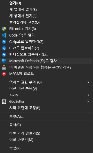 기존 윈도10에서의 우클릭 팝업 메뉴 호출에서도 동일하지만, 추가 작업이 필요해 원해 메뉴가 필요한 경우에는 SHIFT + 우클릭을 해봅시다. 그러면 기존 우클릭 메뉴를 사용할 수 있음. 회사PC라든가 해서 마음대로 레지스트리 수정 등이 불가능한 경우라면 종종 이용하도록 합시다.
