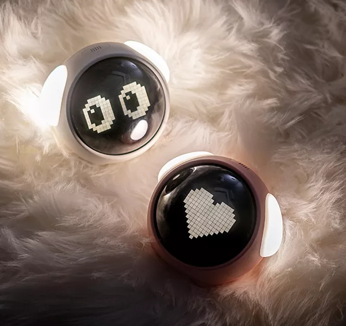 **오늘 받았는데 알람에 개짖는 소리가 있다. 그리고 반응을 말을 하면 하는게 아니라, 움직임이 있거나 소리가 드리면 랜덤으로 눈 표정이 나타나고 그 후 짧게 시각과 온도가 표시되고 다시 화면이 꺼짐. 배터리는 충전하면 되고, 꺼짐시간이 길어서 배터리 지속도 오래가지 않나....하고 생각함. 귀는 무드등 기능인지 밝기 조절이 가능하다.