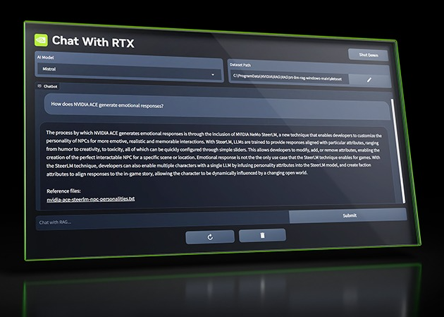 NVIDIA에서 PC의 로컬 데이터를 활용해 개인화된 AI 챗봇을 만들 수 이는 툴인 Chat with RTX를 출시했습니다. Geforce RTX 30/40 시리즈(최소 VRAM 8GB 이상)에서 무료로 사용할 수 있다고 합니다. RGA(Retrieval-Augmented Generaion) 외에 NVIDIA TensorRT-LLM과 RTX 가속을 활용해 AI 기능을 구현한다고 하며, 로컬로 동작하기에 민감한 정보 유출 등의 걱정이 없다고 합니다.