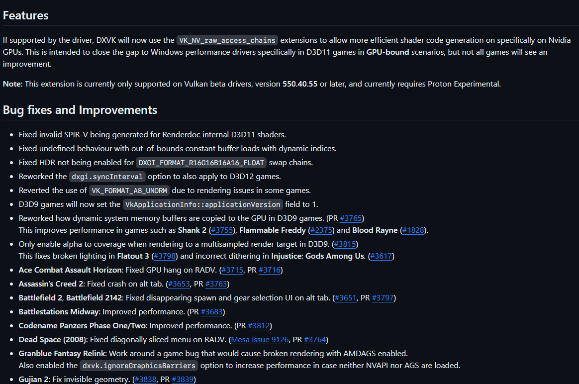 DXVK 2.3.1 업데이트 2024.03.22 22:55 PC.Div.Soft/Free Software 반응형 DXVK의 마이너 업데이트(2.3.1)가 있었습니다. 이번 릴리즈에서 다수의 버그 수정과 성능 개선이 포함되어 있다고 하네요. 반응형 공유하기 게시글 관리 Klein Berry 'PC.Div.Soft > Free Software' 카테고리의 다른 글 구글 맵 다운로더 (0) 2024.04.03 Keyviz - 누른 키를 화면에 표시해주는 프로그램 (0) 2024.03.21 Joplin, OCR 지원(데스크톱 앱) (0) 2024.03.12 댓글 공유하기 다른 글 댓글 이 글 공유하기 구독하기 구독하기 카카오톡 카카오톡 라인 라인 트위터 트위터 Facebook Facebook 카카오스토리 카카오스토리 밴드 밴드 네이버 블로그 네이버 블로그 Pocket Pocket Evernote Evernote 다른 글 Freeter 2 - 프로젝트 기반의 할일 관리 도구 Freeter 2 - 프로젝트 기반의 할일 관리 도구 2024.05.06 구글 맵 다운로더 구글 맵 다운로더 2024.04.03 Keyviz - 누른 키를 화면에 표시해주는 프로그램 Keyviz - 누른 키를 화면에 표시해주는 프로그램 2024.03.21 Joplin, OCR 지원(데스크톱 앱) Joplin, OCR 지원(데스크톱 앱) 2024.03.12 다른 글 더 둘러보기