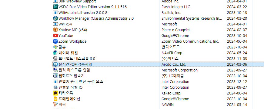 실시간 PC 원격 주치의 팝업이 뜰 때 2024.06.12 19:49 PC.Div.Soft/Tip 반응형 난 이걸 언제 설치했나 곰곰히 생각해보니까 LG U+에서 유선 상담 받을 적에(접속 문의) 설치가 되더라. 유료서비스로도 판매되고 있기도 하고. U+ 관련 상담을 받거나 했다면 설치되어 있을 가능성이 크다. 제어판에서 삭제 가능하니 참조합시다. 반응형 공유하기 게시글 관리 Klein Berry 'PC.Div.Soft > Tip' 카테고리의 다른 글 Lossless Scaling 으로 비디오 업스케일링 (0) 2024.06.16 DDR4-3600Mhz를 넘어가는 메모리 구매시 유의 사항 (0) 2024.03.08 Intel Core i3-7100/7100T 차이 (0) 2024.03.08 댓글 공유하기 다른 글 댓글 이 글 공유하기 구독하기 구독하기 카카오톡 카카오톡 라인 라인 트위터 트위터 Facebook Facebook 카카오스토리 카카오스토리 밴드 밴드 네이버 블로그 네이버 블로그 Pocket Pocket Evernote Evernote 다른 글 게임에서 오디오가 안나오거나 버벅일적에 게임에서 오디오가 안나오거나 버벅일적에 2024.08.04 Lossless Scaling 으로 비디오 업스케일링 Lossless Scaling 으로 비디오 업스케일링 2024.06.16 DDR4-3600Mhz를 넘어가는 메모리 구매시 유의 사항 DDR4-3600Mhz를 넘어가는 메모리 구매시 유의 사항 2024.03.08 Intel Core i3-7100/7100T 차이 Intel Core i3-7100/7100T 차이 2024.03.08 다른 글 더 둘러보기
