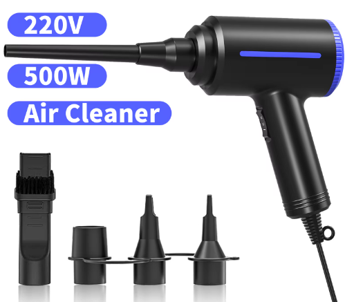 컴프레셔없이 헤어드라이기....같은 느낌이지만 저렴한 가격에 괜찮은 성능. 오래된 PC 부품 청소하기에 괜찮다. 검색은 Air duster 같은 걸로 하면 됨. 배터리는 좀 미덥지 못해서 추천하지 않고, 220V 제품 사면 된다(EU-KR 플러그 필요). 차량에 쓰려면 배터리 타입이 괜찮은 선택이겠지만. 차가운 건 아니고 미지근한 바람이 나옴.