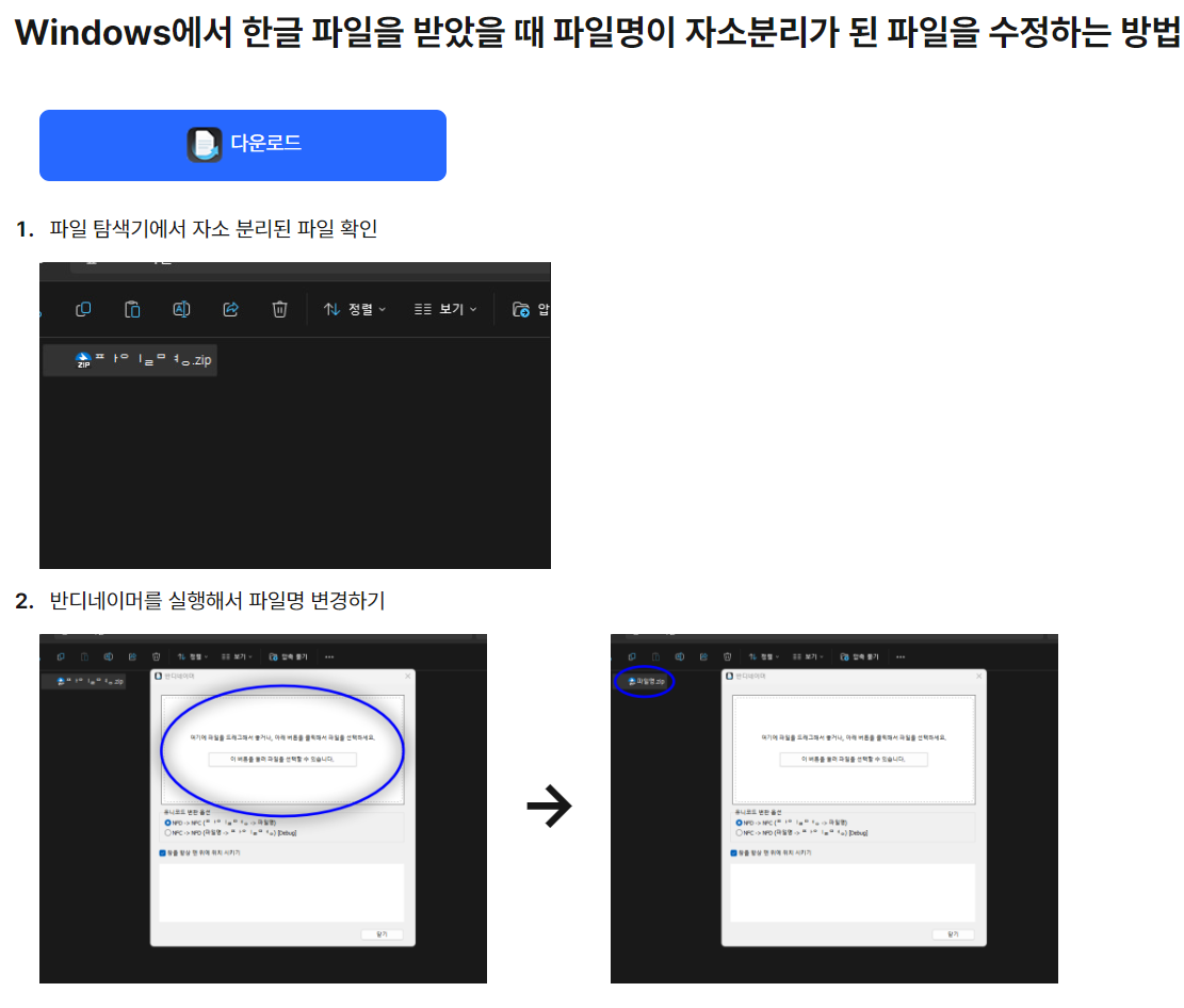 반디네이머 - macOS <> Windows 유니코드 파일명 표시 변경 2025.01.03 19:16 PC.Div.Soft/Driver.Firmware 반응형 보통은 잘 안쓰게 되고, 영문으로 해서 쓰곤 하는데 한글로 된 파일명을 쉽게 수정해주는 툴을 이제야 발견해서 포스팅. 윈도에서는 분리된 파일명을 합쳐주는 기능을 제공하니 참조합시다. 반응형 공유하기 게시글 관리 Klein Berry 'PC.Div.Soft > Driver.Firmware' 카테고리의 다른 글 GMKTec 미니PC BIOS 다운로드 페이지 (0) 2025.01.06 Realtek PCIe FE / GBE / 2.5G / 5G 드라이버 업데이트 (0) 2024.12.26 독거미(AULA) 키보드 드라이버 다운로드 (0) 2024.12.18 댓글 공유하기 다른 글 댓글 이 글 공유하기 구독하기 구독하기 카카오톡 카카오톡 라인 라인 트위터 트위터 Facebook Facebook 카카오스토리 카카오스토리 밴드 밴드 네이버 블로그 네이버 블로그 Pocket Pocket Evernote Evernote 다른 글 Realtek RTL9210(B) NVMe/USB 3.1 컨트롤러 펌웨어 1.33.98.090324 Realtek RTL9210(B) NVMe/USB 3.1 컨트롤러 펌웨어 1.33.98.090324 2025.01.11 GMKTec 미니PC BIOS 다운로드 페이지 GMKTec 미니PC BIOS 다운로드 페이지 2025.01.06 Realtek PCIe FE / GBE / 2.5G / 5G 드라이버 업데이트 Realtek PCIe FE / GBE / 2.5G / 5G 드라이버 업데이트 2024.12.26 독거미(AULA) 키보드 드라이버 다운로드 독거미(AULA) 키보드 드라이버 다운로드 2024.12.18 다른 글 더 둘러보기