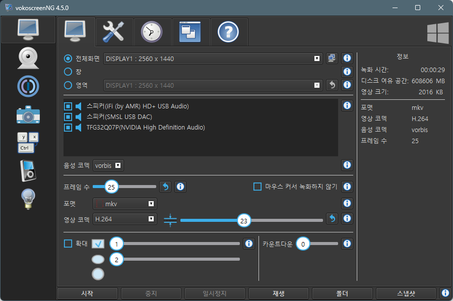 음성도 잘 녹화되는데 볼륨을 윈도 볼륨을 따라가니 이어폰 등으로 볼륨 조절을 작게해서 쓰고 있다면 참조합시다.
