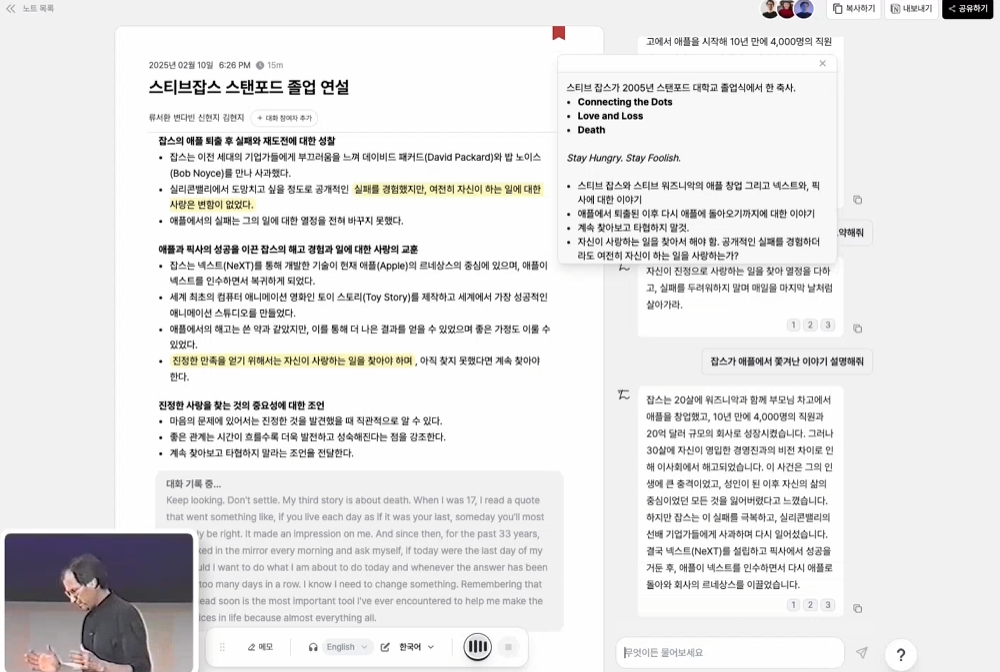 Tiro - 음성인식 노트 앱 2025.04.18 21:00 Web.World/Ai.ML.SD 반응형 트랜스크립션, 번역은 생각보다 많은 곳에서 필요로 한다고 생각한다. 노트북을 들고다닌다면 하다못해 RTX4060 모바일 정도는 되는 걸 들고다녀야 하니 개인적으론 클로바 노트를 쓰고 있는데, 한국어에 한해서는 되게 잘 알아 듣는다고 생각함. 비슷한 서비스는 다글로(국내)에서 제공중이다. 다만 여타 다른 나라의 말을 적거나 하는 경우라면 Whisper앱이나 MS 애저....를 사용한 후, GPT에게 요약을 해달라고했는데, 이번에 티로(Tiro)에서 한번 해보니까 요약까지 잘 해준다. 다만 한국어 말 알아듣는 건 클로바노트보다는 부족한 듯. 클로바노트는 매월 무료 크레딧이 있어서 찍먹해보기에도 괜찮은 편. 아무튼 Tiro는 노트북보다는 스마트폰, 태블릿에서 사용하기 좋더라. 반응형 공유하기 게시글 관리 Klein Berry 'Web.World > Ai.ML.SD' 카테고리의 다른 글 Elevenlabs.io - 자연스러운 TTS 서비스 (0) 2025.04.18 Openrouter.ai - 다양한 모델을 통합해 사용할 수 있는 플랫폼 (0) 2025.04.18 Rewind.ai - 개인비서 서비스 (0) 2025.04.18 댓글 공유하기 다른 글 댓글 이 글 공유하기 구독하기 구독하기 카카오톡 카카오톡 라인 라인 트위터 트위터 Facebook Facebook 카카오스토리 카카오스토리 밴드 밴드 네이버 블로그 네이버 블로그 Pocket Pocket Evernote Evernote 다른 글 TRIPO AI - 프롬프트로 3D 모델 제작 TRIPO AI - 프롬프트로 3D 모델 제작 2025.04.18 Elevenlabs.io - 자연스러운 TTS 서비스 Elevenlabs.io - 자연스러운 TTS 서비스 2025.04.18 Openrouter.ai - 다양한 모델을 통합해 사용할 수 있는 플랫폼 Openrouter.ai - 다양한 모델을 통합해 사용할 수 있는 플랫폼 2025.04.18 Rewind.ai - 개인비서 서비스 Rewind.ai - 개인비서 서비스 2025.04.18 다른 글 더 둘러보기