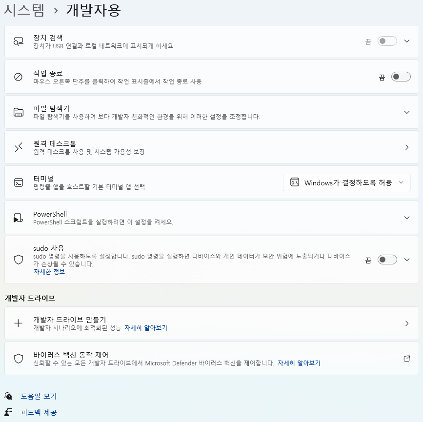 Windows 11, 개발자 드라이브로 ReFS 사용해보기 2025.04.27 19:51 PC.Div.Soft/Windows.Office 반응형 시작을 누르고 개발자 설정을 입력하면 ReFS를 사용해볼 수 있다. 여기서 작업 종료 버튼을 컨텍스트 메뉴에 표시할 수 있어서 작업 종료를 좀 더 쉽게 할 수 있게도 가능하다. ReFS를 써볼 수 있는 방법으로 개발자 드라이브를 활용해볼 수 있는데, 가상 디스크로도 사용 가능하니 ReFS 한번 맛보고 싶다면 사용해보도록 합시다(최소 용량 크기가 50GB). 반응형 공유하기 게시글 관리 Klein Berry 'PC.Div.Soft > Windows.Office' 카테고리의 다른 글 Windows 10 Bitlocker 복구 화면이 반복 표시되는 버그 (0) 2025.05.21 winget 명령을 사용한 앱 업데이트 및 설치 (0) 2025.04.27 윈도에서 모니터 끄기 바로가기 만들기 (0) 2025.04.19 댓글 공유하기 다른 글 댓글 이 글 공유하기 구독하기 구독하기 카카오톡 카카오톡 라인 라인 트위터 트위터 Facebook Facebook 카카오스토리 카카오스토리 밴드 밴드 네이버 블로그 네이버 블로그 Pocket Pocket Evernote Evernote 다른 글 Microsoft, Windows 11 업데이트 미리보기 배포(KB5058499) Microsoft, Windows 11 업데이트 미리보기 배포(KB5058499) 2025.05.29 Windows 10 Bitlocker 복구 화면이 반복 표시되는 버그 Windows 10 Bitlocker 복구 화면이 반복 표시되는 버그 2025.05.21 winget 명령을 사용한 앱 업데이트 및 설치 winget 명령을 사용한 앱 업데이트 및 설치 2025.04.27 윈도에서 모니터 끄기 바로가기 만들기 윈도에서 모니터 끄기 바로가기 만들기 2025.04.19 다른 글 더 둘러보기
