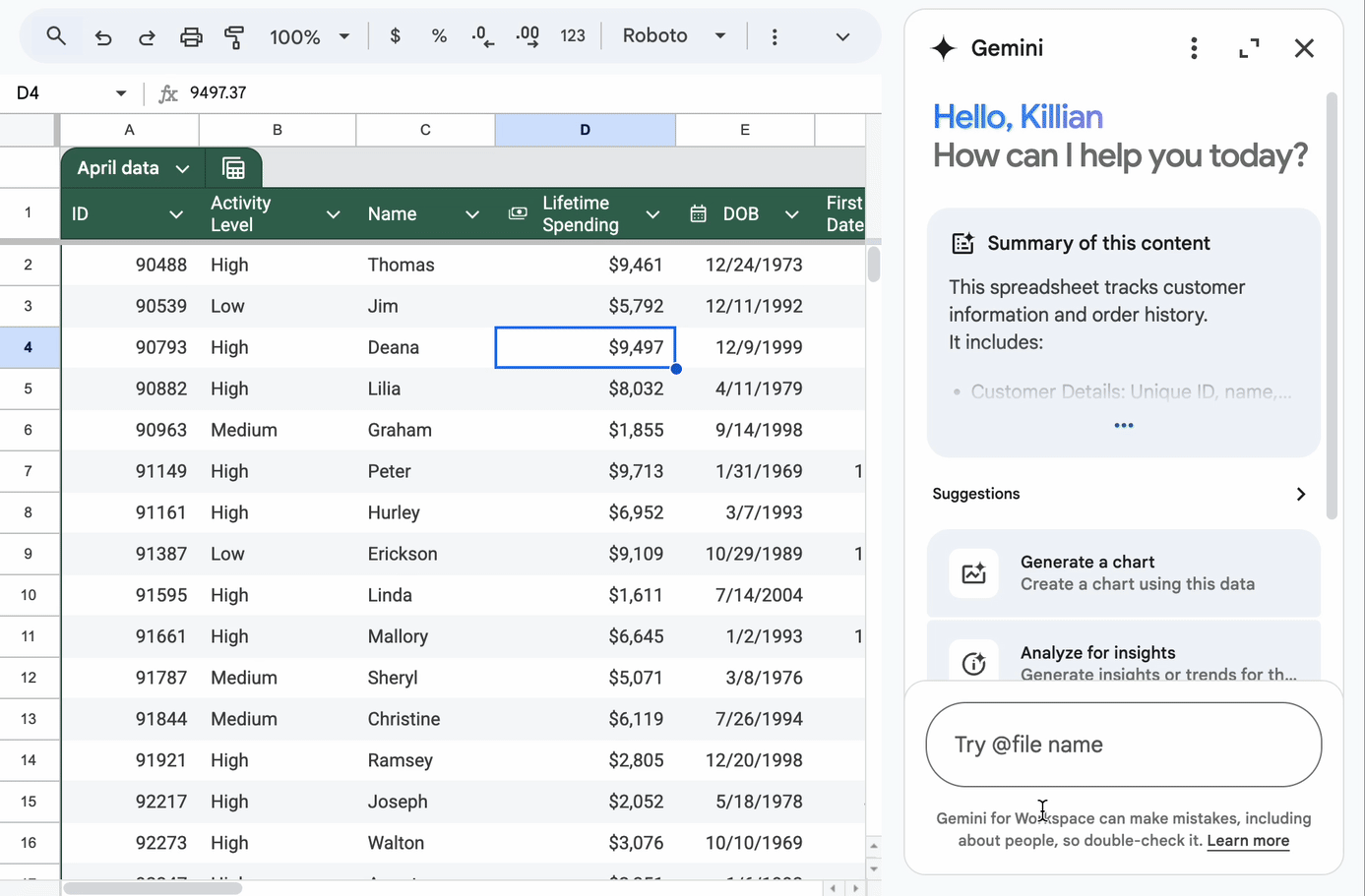Google Workspace중 하나인 Google Sheets에서 Gemini AI를 사용한 자연어로 명령을 처리하는 작업을 지원할 것이라고 합니다. Workspace Business/Enterprise/Education 요금제 및 Google One AI Premium과 같은 요금제를 사용해도 사용 가능하다고 하고요.