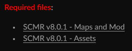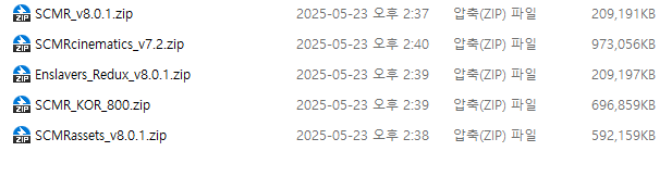 SCMR v8.0.1 - Maps and Mod, SCMR v8.0.1 - Assets. 로컬파일은 아래 스토리크래프트꺼 받으면 되고 이거 압축 풀어보면 설명 다 잘되어 있다. 시네마틱 영상 필요하다면 이것도 받아주자.