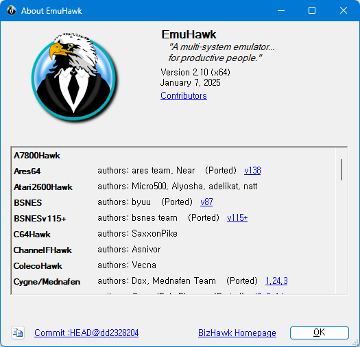 BizHawk - 멀티 플랫폼 시뮬레이터 2025.05.28 15:27 PC.Div.Soft/Free Software 반응형 깃헙은 여기. 공홈은 여기. 윈도 버전의 경우 먼저 설치해야 할 거 있다고 하니 먼저 설치해주자. 이후 본버전 압축풀어서 실행파일 실행하면 됨. 버전 정보 확인하면 까마귀 소리(....) 나오더라. 시뮬레이터의 구동이 전용 앱보다는 조금 무거운 감이 있지 않나 싶은데(초기 구동 시간 등), 하지만 최근까지 개발되고 있는 시뮬레이터나 구동 호환성도 좋다는 게 장점이라 생각함. 반응형 공유하기 게시글 관리 Klein Berry 'PC.Div.Soft > Free Software' 카테고리의 다른 글 USB 로그 뷰어 (0) 2025.05.30 Microsoft의 터미널용 에디터 - EDIT (0) 2025.05.21 clawPDF - 오픈소스 가상 PDF/OCR/Image 프린터 (0) 2025.05.21 댓글 공유하기 다른 글 댓글 이 글 공유하기 구독하기 구독하기 카카오톡 카카오톡 라인 라인 트위터 트위터 Facebook Facebook 카카오스토리 카카오스토리 밴드 밴드 네이버 블로그 네이버 블로그 Pocket Pocket Evernote Evernote 다른 글 kan.bn - 오픈 소스 Trello 대체제 kan.bn - 오픈 소스 Trello 대체제 2025.06.05 USB 로그 뷰어 USB 로그 뷰어 2025.05.30 Microsoft의 터미널용 에디터 - EDIT Microsoft의 터미널용 에디터 - EDIT 2025.05.21 clawPDF - 오픈소스 가상 PDF/OCR/Image 프린터 clawPDF - 오픈소스 가상 PDF/OCR/Image 프린터 2025.05.21 다른 글 더 둘러보기