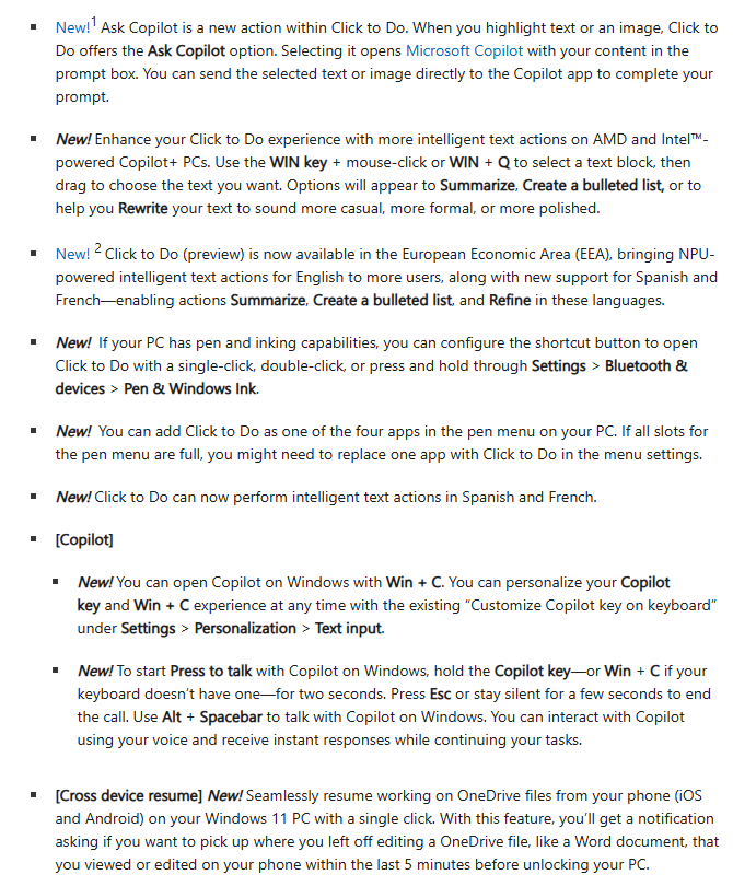 Microsoft, Windows 11 업데이트 미리보기 배포(KB5058499) 2025.05.29 21:05 PC.Div.Soft/Windows.Office 반응형 MS가 윈도11 24H2용 업데이트 미리보기(KB5058499)를 공개했습니다. Ask Copilot기능 추가와 더불어 블투 관련 버그, 게임 실행 버그, 입력 서비스의 메모리 누수 문제 등이 해결되었다고 하네요. 반응형 공유하기 게시글 관리 Klein Berry 'PC.Div.Soft > Windows.Office' 카테고리의 다른 글 윈도11 IP, 메모장 앱에 Markdown 지원 (0) 2025.06.03 Windows 10 Bitlocker 복구 화면이 반복 표시되는 버그 (0) 2025.05.21 Windows 11, 개발자 드라이브로 ReFS 사용해보기 (0) 2025.04.27 댓글 공유하기 다른 글 댓글 이 글 공유하기 구독하기 구독하기 카카오톡 카카오톡 라인 라인 트위터 트위터 Facebook Facebook 카카오스토리 카카오스토리 밴드 밴드 네이버 블로그 네이버 블로그 Pocket Pocket Evernote Evernote 다른 글 Windows C타입 USB 관련 요구 사항 업데이트 Windows C타입 USB 관련 요구 사항 업데이트 2025.06.03 윈도11 IP, 메모장 앱에 Markdown 지원 윈도11 IP, 메모장 앱에 Markdown 지원 2025.06.03 Windows 10 Bitlocker 복구 화면이 반복 표시되는 버그 Windows 10 Bitlocker 복구 화면이 반복 표시되는 버그 2025.05.21 Windows 11, 개발자 드라이브로 ReFS 사용해보기 Windows 11, 개발자 드라이브로 ReFS 사용해보기 2025.04.27 다른 글 더 둘러보기