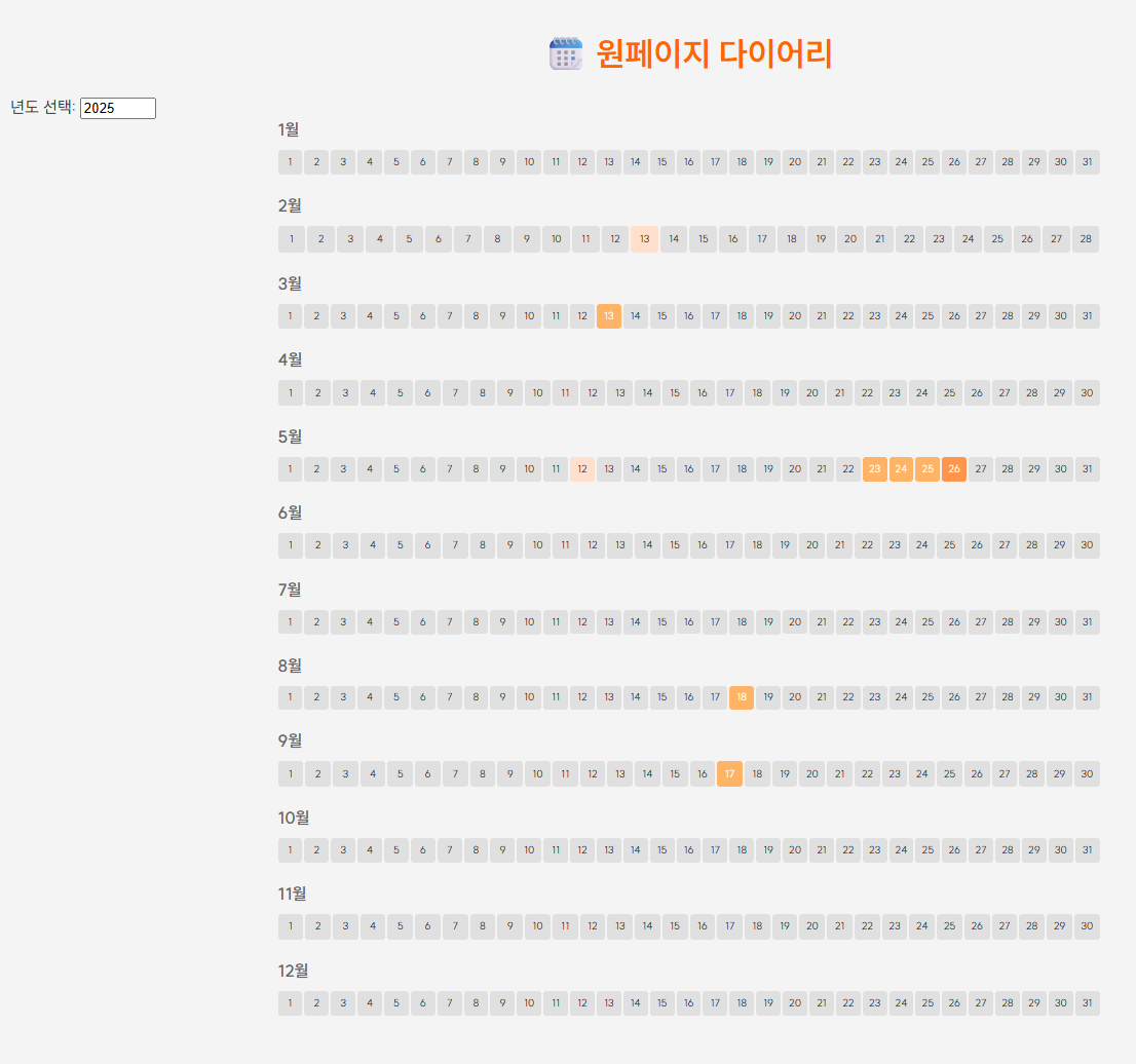 웹사이트는 여기. 목표 확인이나 뭐 그런 것도 넣을 수 있다. 레딧에서 이미 꽤 유명한 듯. 깃헙은 여기. 깃헙의 잔디처럼 매일 했는지 안했는지 이런 거 체크하는 거 GPT한테 로컬에 저장되게 해줘...하고 있다가 발견. 커스터마이징이 가능하고, 날짜를 클릭하면 해당 페이지로 이동됨. 다만 한글 폰트가 이쁘게 나오지는 않아서 영어로 쓰는게 좋지 않나 싶음. 플래너는 사실 이바닥 짬 높은 노션이나 구글 독스나 오피스 템플릿이(요즘엔 디자이너) 되게 많다.