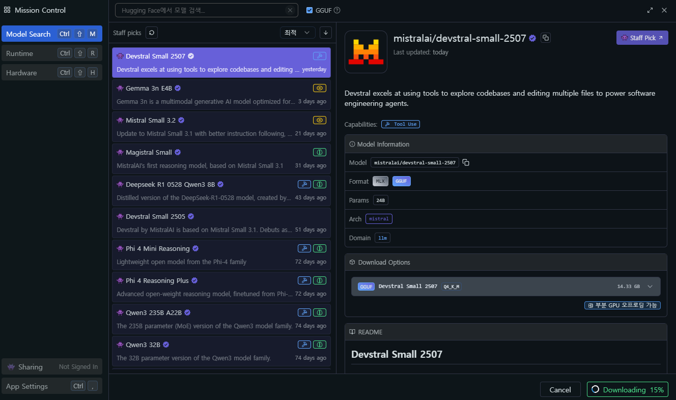Mistral AI, Devstral Small 2507 공개 2025.07.11 12:38 Web.World/Ai.ML.SD 반응형 Mistral AI에서 Devstral Small 2507 모델을 공개했습니다. LM Studio에서 사용해볼 수 있습니다. 전체적인 성능 향상과 더불어 비용 효율적이라고 하네요. 코드 편집, 파일 탐색 등도 가능하다고 하니 관심 있으신 분들은 챙겨보세요.... 반응형 공유하기 게시글 관리 Klein Berry 'Web.World > Ai.ML.SD' 카테고리의 다른 글 fixFP16ErrorsSDXLLowerMemoryUse (0) 2025.07.14 Nativemind - 로컬 LLM 기반의 브라우저 확장 (0) 2025.07.11 xAI, Grok 4 출시 (0) 2025.07.11 댓글 공유하기 다른 글 댓글 이 글 공유하기 구독하기 구독하기 카카오톡 카카오톡 라인 라인 트위터 트위터 Facebook Facebook 카카오스토리 카카오스토리 밴드 밴드 네이버 블로그 네이버 블로그 Pocket Pocket Evernote Evernote 다른 글 Super Grok에 3D 애니메이션 캐릭터 대화 기능 추가 Super Grok에 3D 애니메이션 캐릭터 대화 기능 추가 2025.07.16 fixFP16ErrorsSDXLLowerMemoryUse fixFP16ErrorsSDXLLowerMemoryUse 2025.07.14 Nativemind - 로컬 LLM 기반의 브라우저 확장 Nativemind - 로컬 LLM 기반의 브라우저 확장 2025.07.11 xAI, Grok 4 출시 xAI, Grok 4 출시 2025.07.11 다른 글 더 둘러보기