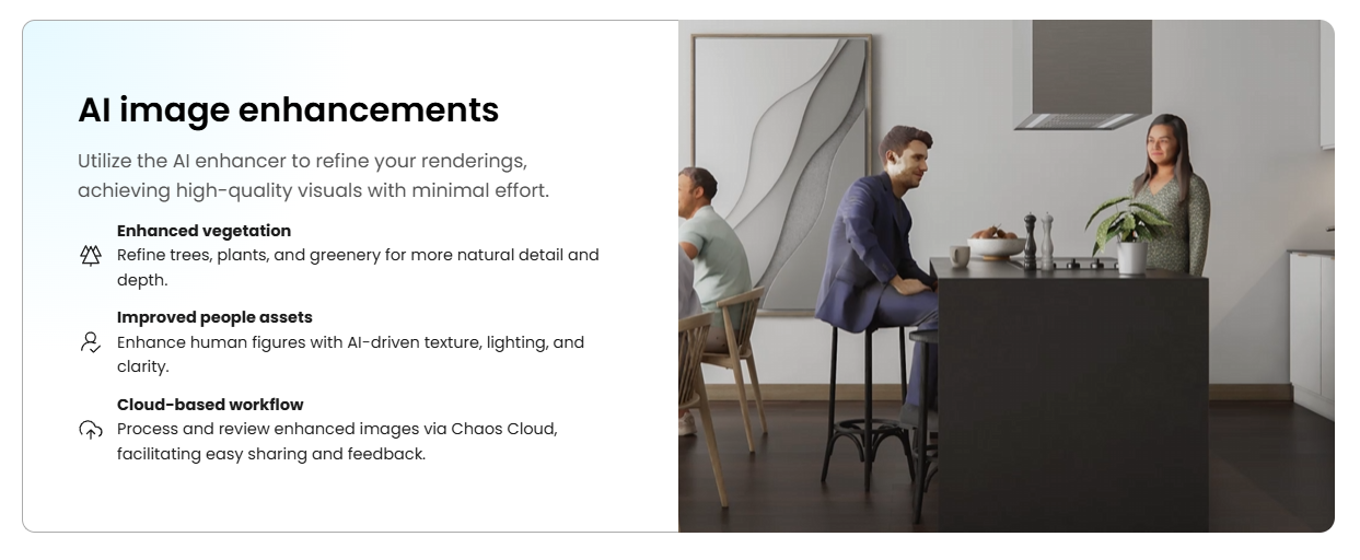 엔스케이프 AI 요금제출시 2025.07.23 16:33 Web.World/Tip.Cad.De.3D.Font 반응형 Enscape 프리미엄 요금제에 AI 기반 장면 개선 기능이 추가되었다고 합니다. 월 $4정도의 추가 비용이 들어간다고 합니다. 나무, 식물, 조명 디테일 개선 등의 기능을 사용할 수 있다고 합니다. 년간 라이센스로 월 75,000원정도네요. 반응형 공유하기 게시글 관리 Klein Berry 'Web.World > Tip.Cad.De.3D.Font' 카테고리의 다른 글 어도비 일러스트레이터 생성형 채우기 (0) 2025.07.23 D5 Render 2.11 출시 (0) 2025.07.23 유니버셜 디자인 서체(온고딕) (0) 2025.07.22 댓글 공유하기 다른 글 댓글 이 글 공유하기 구독하기 구독하기 카카오톡 카카오톡 라인 라인 트위터 트위터 Facebook Facebook 카카오스토리 카카오스토리 밴드 밴드 네이버 블로그 네이버 블로그 Pocket Pocket Evernote Evernote 다른 글 PenPot 2.9 업데이트 PenPot 2.9 업데이트 2025.08.07 어도비 일러스트레이터 생성형 채우기 어도비 일러스트레이터 생성형 채우기 2025.07.23 D5 Render 2.11 출시 D5 Render 2.11 출시 2025.07.23 유니버셜 디자인 서체(온고딕) 유니버셜 디자인 서체(온고딕) 2025.07.22 다른 글 더 둘러보기