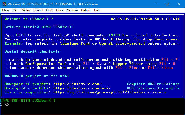 dosbox-x -conf win98.conf