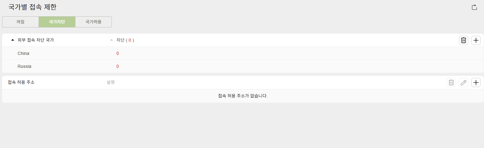반대로 대한민국을 제외한 모든 곳을 차단하려면 국가허용에서 대한민국(South Korea)를 선택해주면 되니(외부에서 접속이 필요할 시) 필요에 맞게 설정합시다. 근데 이러면 일부 웹사이트의 접속이나, 앱(인증서 자동 갱신 등)도 제한되어버리니까 필요한 만큼 설정하는 습관을 들입시다. 차단하고 접속이 안되는 웹사이트는 접속 허용 주소에 넣어주면 접속은 되는데, 이게 각종 웹드라이브 제공하는 곳들은 이렇게 해도 종종 다운로드가 안되는 현상이 있더라. 이 경우라면 차단 방법을 바꿔봅시다.