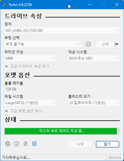 위처럼 입력하면 고용량 메모리의 FAT32 포맷 사용이 가능하.....긴 한데 이렇게 포맷해서 이게 USB 메모리를 사용할(카오디오 등) 장치에서 올바르게 인식되는지도 한 번 확인해야 한다. 이 경우에도 보통 32GB 이상은 FAT32로 해도 인식이 안되기에... 16GB USB 플래시 메모리는 요즘 구하기도 어렵거나, 대용량 사서 32GB만 쓰거나 해야 함. 그냥 맘편히 RUFUS 씁시다.