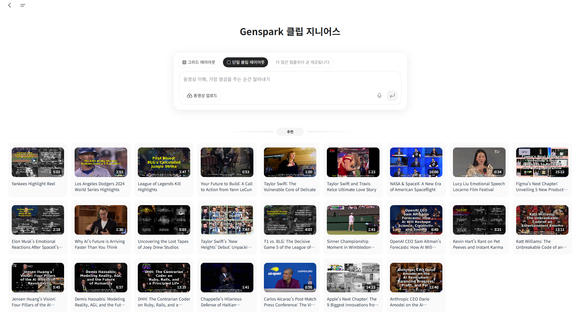 Genspark Clip Genius - 프롬프트로 영상 자동 편집 2025.09.04 09:20 Web.World/Ai.ML.SD 반응형 젠스파크의 영상을 편집해주는 기능이 공개되었습니다. 영상 분석 > 스토리 구성 > 편집의 과정을 프롬프트만으로 가능하게 해준다고 하네요. 다만 속도가 빠르진 않은 것 같습니다. 일단 월 $20 정도에서 이런저런 활용이 가능하니까 젠스파크 사용자분들이라면 한번 확인을 해보세요. 반응형 공유하기 게시글 관리 Klein Berry 'Web.World > Ai.ML.SD' 카테고리의 다른 글 Hunyuan 3D - 텍스트로 만드는 영상 (0) 2025.09.04 WAI-NSFW-illustrious-SDXL v15 출시 (0) 2025.09.04 Google Gemini, 스마트 스피커에 적용 예정 (0) 2025.09.04 댓글 공유하기 다른 글 댓글 이 글 공유하기 구독하기 구독하기 카카오톡 카카오톡 라인 라인 트위터 트위터 Facebook Facebook 카카오스토리 카카오스토리 밴드 밴드 네이버 블로그 네이버 블로그 Pocket Pocket Evernote Evernote 다른 글 ElevenLabs, SFX v2 공개 ElevenLabs, SFX v2 공개 2025.09.04 Hunyuan 3D - 텍스트로 만드는 영상 Hunyuan 3D - 텍스트로 만드는 영상 2025.09.04 WAI-NSFW-illustrious-SDXL v15 출시 WAI-NSFW-illustrious-SDXL v15 출시 2025.09.04 Google Gemini, 스마트 스피커에 적용 예정 Google Gemini, 스마트 스피커에 적용 예정 2025.09.04 다른 글 더 둘러보기