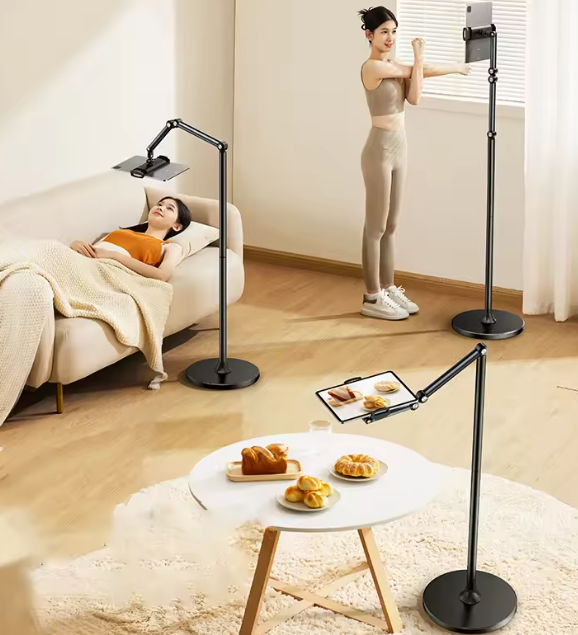 자기 용도에 맞추면 되는데 직부 촬영용도로 쓸 수도 있고, 태블릿을 보조 화면으로 쓰거나 운동하면서 쓰는 것도 가능. 폰이나 태블릿으로 뭔가를 촬영해야 하는 경우 좀 필요하더라. 이거랑 조명이랑. 개인적으로 누워서 뭘 하는 성격은 아니기에 아래 사진처럼 누워서 보는건 안해봄. $30이 안되는 가격이고, 아이패드 프로(4세대) 물려봤는데 잘 잡고 있더라. eBOOK용도로도 쓸만하다.