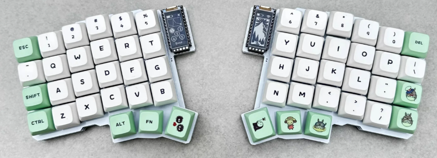알리서 스플릿 키보드 가성비 라인업들 보면서 발견. GKM70이랑 lilly 58같은 건 써보기도 했는데, Silakka54는 처음 봤음. 어느쪽이든 키캡 개수가 차이나니 미묘한 타건 차이는 있을 것 같긴한데, 일단 만들어두면 이쁠 것 같아서(....). 키캡 구하는 게 더 일이다. 스위치야 맘에 드는 거 쓰면 되고. 짧은 키들을 지원하는 키캡이 많지 않은게 조금 아쉬운 점. QMK/ZMK 지원.