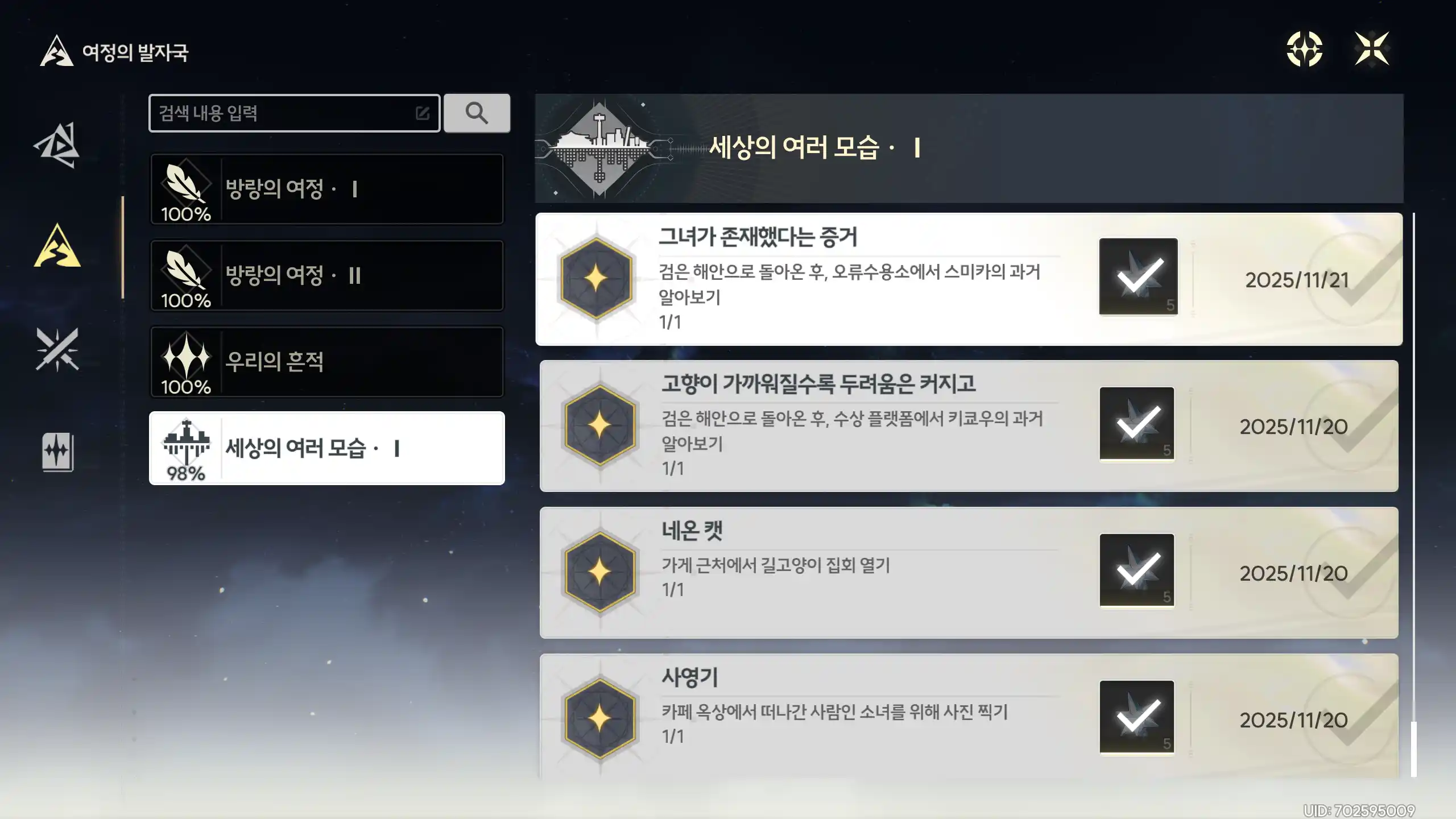 명조 - 그녀가 존재했다는 증거 업적 2025.11.21 14:30 Game.Life 반응형 세상의 여러 모습 I에 뭔가 하나 생겨서 마저 하려고 하다 발견. 검은 해안 지하 > 기지 > 지하(엘베타고) > 미에 NPC에게 말걸면 달성됨. 반응형 공유하기 게시글 관리 Klein Berry 'Game.Life' 카테고리의 다른 글 엽빛나 (0) 2025.11.26 러브라이브 성우 자기소개 (0) 2025.11.11 flax 게임 엔진 (0) 2025.11.05 댓글 공유하기 다른 글 댓글 이 글 공유하기 구독하기 구독하기 카카오톡 카카오톡 라인 라인 트위터 트위터 Facebook Facebook 카카오스토리 카카오스토리 밴드 밴드 네이버 블로그 네이버 블로그 Pocket Pocket Evernote Evernote 다른 글 창세기전 외전: 서풍의 광시곡 리마스터 예정 창세기전 외전: 서풍의 광시곡 리마스터 예정 2025.12.02 엽빛나 엽빛나 2025.11.26 러브라이브 성우 자기소개 러브라이브 성우 자기소개 2025.11.11 flax 게임 엔진 flax 게임 엔진 2025.11.05 다른 글 더 둘러보기
