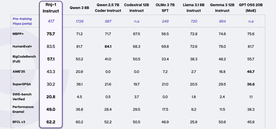 Essential AI, Rnj-1 발표 2025.12.07 14:32 Web.World/Ai.ML.SD 반응형 미국의 AI 회사 Essential AI에서 Rnj-1(Range-1)을 발표했습니다. 오픈 소스 모델이라고 하며 허깅 페이스, LM Studio 등에서 사용해볼 수 있습니다. llama.cpp를 빌드해야하긴 하지만요. Together.ai에서도 저렴한 가격으로 사용해볼 수 있습니다. 8B 매개변수지만 다양한 프로그래밍 언어에서 우수한 성능을 보여주고, 에이전트 기능도 강력하다고 하니 참조하세요. 반응형 공유하기 게시글 관리 Klein Berry 'Web.World > Ai.ML.SD' 카테고리의 다른 글 olmOCR - 오픈 소스 OCR 모델 (0) 2025.12.07 Deepseek v3.2 공개 (0) 2025.12.06 Longcat image 오픈 소스로 공개 (0) 2025.12.06 댓글 공유하기 다른 글 댓글 이 글 공유하기 구독하기 구독하기 카카오톡 카카오톡 라인 라인 트위터 트위터 Facebook Facebook 카카오스토리 카카오스토리 밴드 밴드 네이버 블로그 네이버 블로그 Pocket Pocket Evernote Evernote 다른 글 Nexa - Hyperlink AI Nexa - Hyperlink AI 2025.12.07 olmOCR - 오픈 소스 OCR 모델 olmOCR - 오픈 소스 OCR 모델 2025.12.07 Deepseek v3.2 공개 Deepseek v3.2 공개 2025.12.06 Longcat image 오픈 소스로 공개 Longcat image 오픈 소스로 공개 2025.12.06 다른 글 더 둘러보기