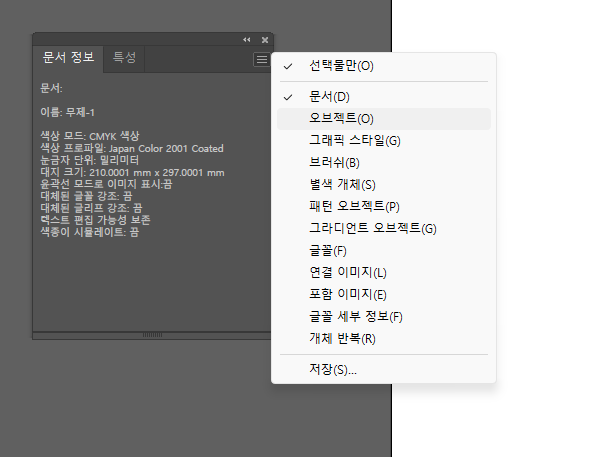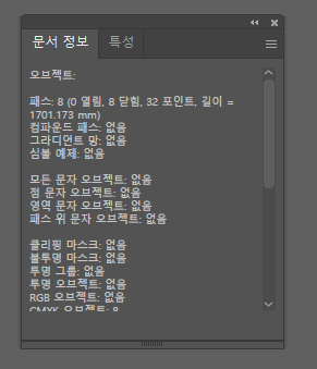 특정 공간 안에 들어가는 LED 개수를 가늠해본다던지, 배치 가늠해보거 할 적에 쓸만하다. 여러가지 방법이 있겠지만 [창] > 문서 정보를 열고, 오브젝트를 선택하면 오브젝트 정보가 나온다.