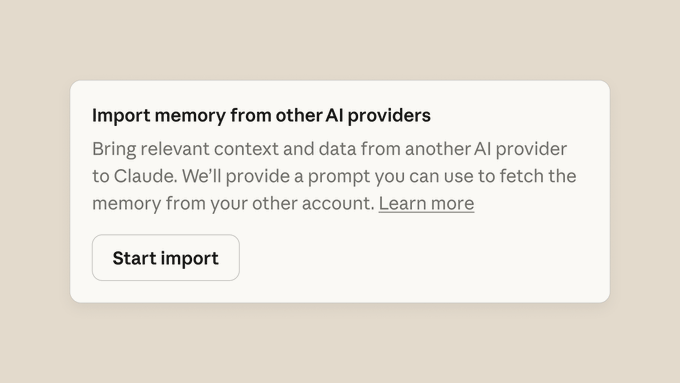 Claude, 무료 사용자도 메모리 기능 사용 가능 2026.03.04 00:26 Web.World/Ai.ML.SD 반응형 앤스로픽(Anthropic)이 자사의 LLM Claude의 무료 플랜에서도 메모리 기능을 사용할 수 있다고 발표했습니다. AI가 이전에 사용자와 했던 대화를 기억하고 이를 참조해 새로운 대화에서 활용할 수 있는 기능이고요. 클로드에서는 Pro 플랜 이상 사용자에게만 제공되었었는데, 이제 무료 플랜에서도 사용할 수 있다고 하고요. 또한 다른 AI 제공자에게서 메모리를 마이그레이션 하는 기능도 지원한다고 하네요. 반응형 공유하기 게시글 관리 Klein Berry 'Web.World > Ai.ML.SD' 카테고리의 다른 글 Google Vids에서 새로운 AI기반 아바타 지원 (0) 2026.03.04 클로드, 서버 에러 (0) 2026.03.02 ComfyUI, Dynamic Vram 기능 활성화 (0) 2026.03.02 댓글 공유하기 다른 글 댓글 이 글 공유하기 구독하기 구독하기 카카오톡 카카오톡 라인 라인 트위터 트위터 Facebook Facebook 카카오스토리 카카오스토리 밴드 밴드 네이버 블로그 네이버 블로그 Pocket Pocket Evernote Evernote 다른 글 OpenAI, GPT‑5.3 Instant 출시: 더 자연스럽고 유용한 일상 대화 OpenAI, GPT‑5.3 Instant 출시: 더 자연스럽고 유용한 일상 대화 2026.03.05 Google Vids에서 새로운 AI기반 아바타 지원 Google Vids에서 새로운 AI기반 아바타 지원 2026.03.04 클로드, 서버 에러 클로드, 서버 에러 2026.03.02 ComfyUI, Dynamic Vram 기능 활성화 ComfyUI, Dynamic Vram 기능 활성화 2026.03.02 다른 글 더 둘러보기